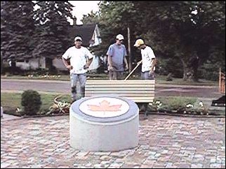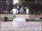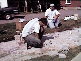Greg Ryan and Josh Luloff lay the runway blocks.