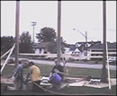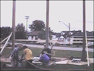 John Hildebrandt Jr., Bob Corrigan and Dave Leslie set up the posts