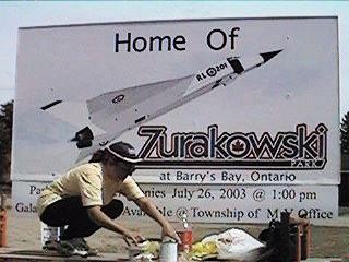 Jackie Dorman-Recoskie modifies sign to read HOME OF ZURAKOWSKI