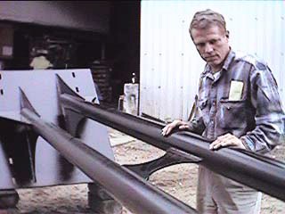 John Hildebrandt Jr. inspects the Arrow base with a keen engineer's